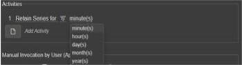 - Retain Specify how long to retain data in the database. Typically used in conjunction with another activity, such as moving data to a storage location.