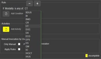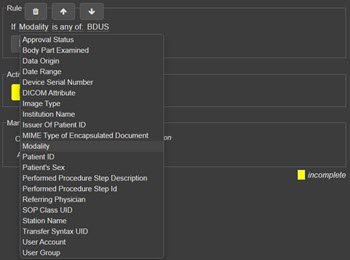 Specify the rule for the policy by adding one or more conditions. All conditions must be satisfied in order for the policy to be applied to a study.